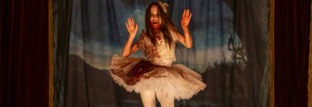 The sound track provides am intense atmosphere along with a strong dialogue of sarcasm and witty assholeness. Very gruesome and strong scenes of gore and bloody messes give this movie an extreme watch factor. Locked in from start to finish Abigail is the stuff of nightmares’.